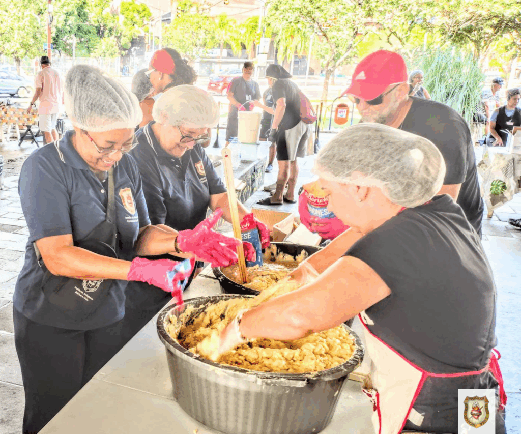 Ao todo, foram servidas 1.250 refeições completas, acompanhadas de refrigerante e quindim, garantindo não apenas alimento, mas também um sinal concreto de cuidado com a vida.