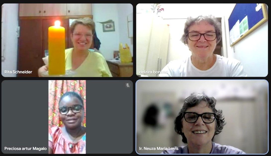 A organização dos encontros foi definida em reunião online realizada na noite de segunda-feira, 6 de abril, com a participação das Irmãs Rita Loici Schneider, Delzira Bonatto, Neuza Lovis e Preciosa Artur Magalo. Também integrou o momento a Irmã Maria Aparecida Barboza, Conselheira Geral do Setor de Animação Missionária, contribuindo com a articulação do processo.