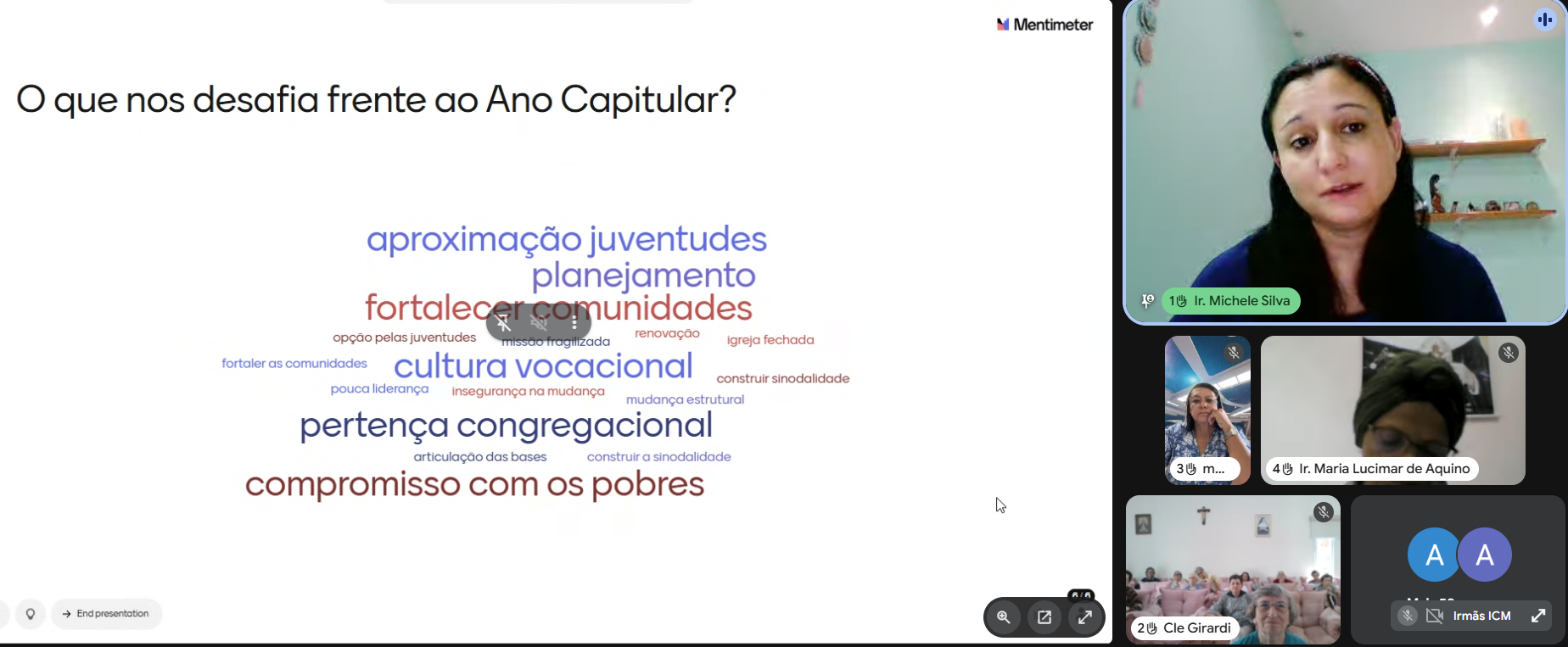 Em um segundo momento, a partir da partilha das comunidades, as Irmãs apontaram desafios concretos à missão. Entre eles, destacam-se a necessidade de potencializar a inserção pastoral, ampliar a aproximação com as juventudes, fortalecer práticas sinodais, cultivar uma cultura vocacional e assumir, com maior incidência, causas sociais urgentes, como o enfrentamento à violência contra a mulher. Esses elementos se apresentam como caminhos para qualificar e tornar ainda mais significativa a ação missionária nos diversos contextos.