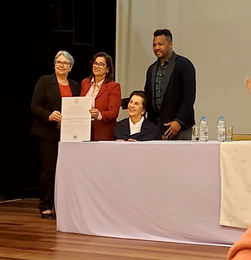Segundo ela, seu legado é invisível aos olhos do poder, visível na transformação dos corpos, das casas, dos quintais, das comunidades que tocou. A coordenadora afirmou que a vida da homenageada representa, com rara integridade, o compromisso com os valores que fundamentam a universidade pública: promoção da justiça social, respeito à diversidade epistêmica, a valorização da dignidade humana e diálogo com os territórios invisibilizados pela história oficial. “Por isso tudo, a UFPel, ao conceder o título não apenas homenageia uma trajetória singular, mas reafirma seu papel como universidade pública, de reconhecimento, reparação, valorização de experiências que constroem o Brasil das margens ao centro”.